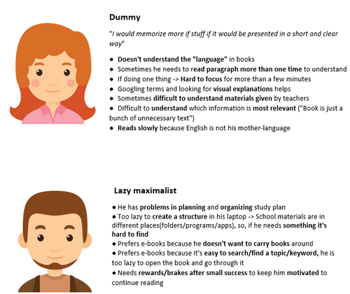 · The e-books hater - a user who is not happy with the e-books reading experience, as it doesn’t offer him the same perks as physical books and papers and feels like he remembers less.